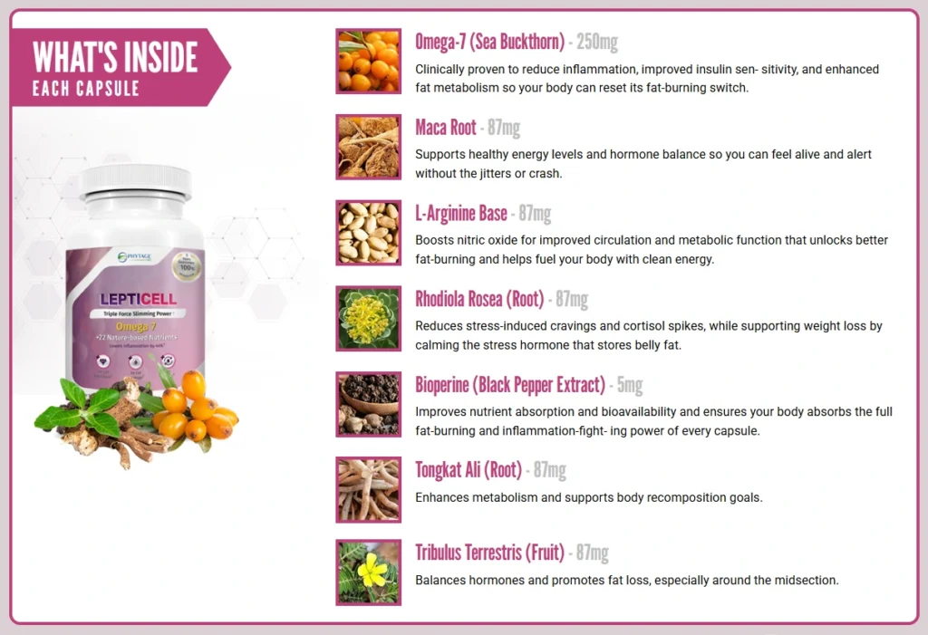 LeptiCell’s unique blend is the ultimate solution in the market. It not only supports fat loss but also improves overall hormonal communication by clearing inflammation in the brain, eliminating constant hunger, and promoting permanent, effortless metabolic function.
